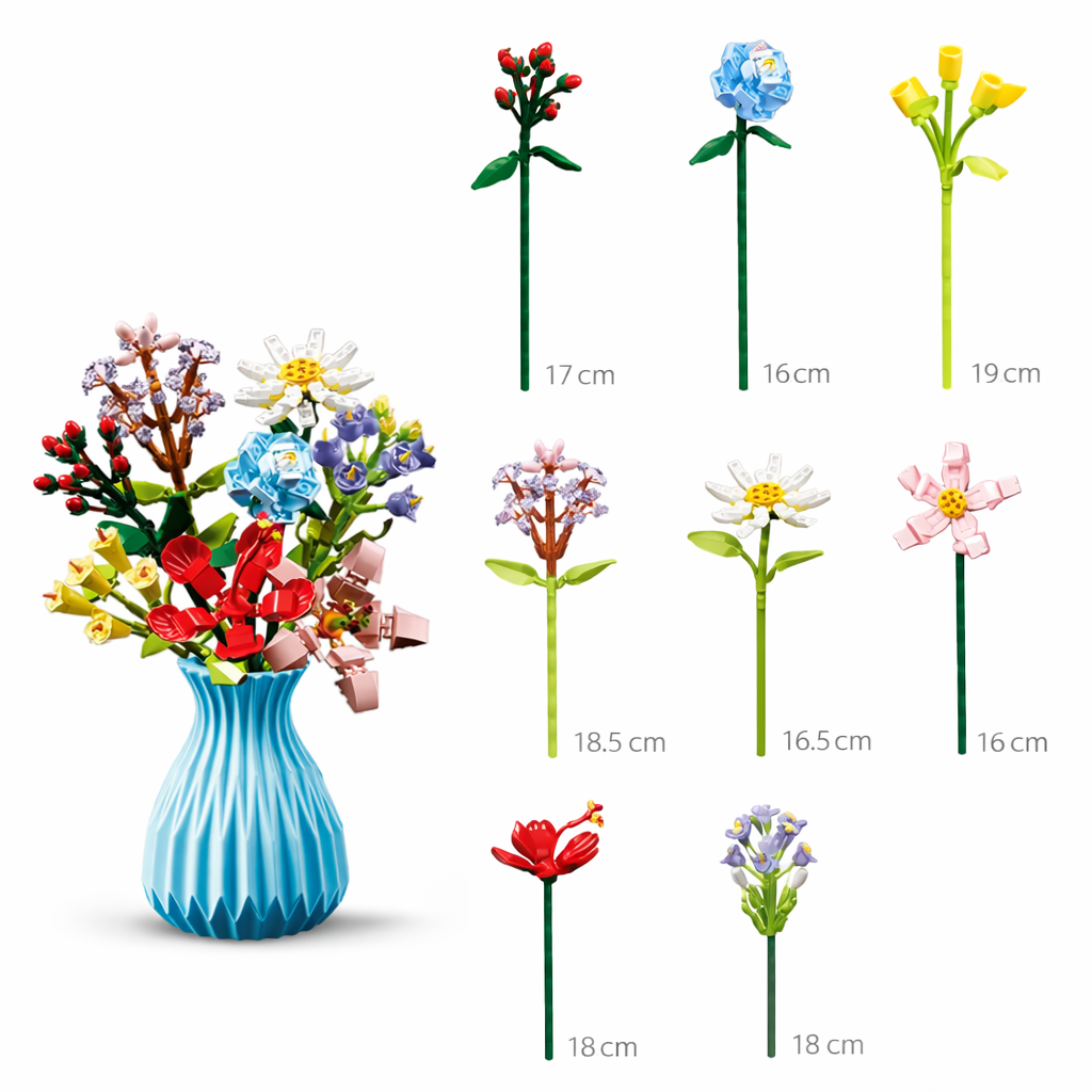 Evet. Tüm çiçekler ve mini figürler blok parçalar halinde gelir. Kutu içindeki talimatı takip ederek kolayca kendiniz birleştirirsiniz.